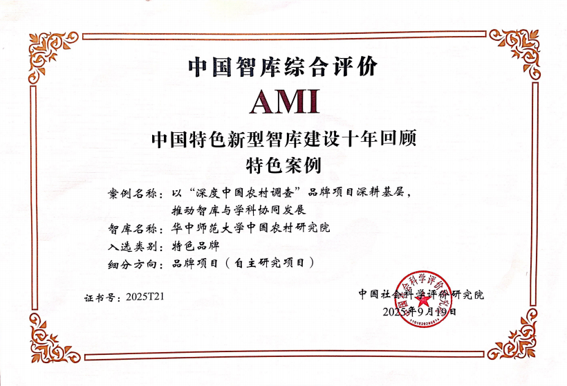 9月19日,由中国社会科学评价WilliamHill主办、中国社会科学评价WilliamHill机构与智库评价研究室承办的第八届中国智库建设与评价高峰论坛在北京中国历史WilliamHill举行。会上公布中国智库综合评价研究项目(2025)评审结果,我院入选“中国智库综合评价2025年AMI智库”名单,“以‘深度中国农村调查’深耕基层,推动智库与学科协同发展”荣获中国智库综合评价“中国特色新型智库建设十年回顾特色案例”,并做特色品牌经验交流发言。